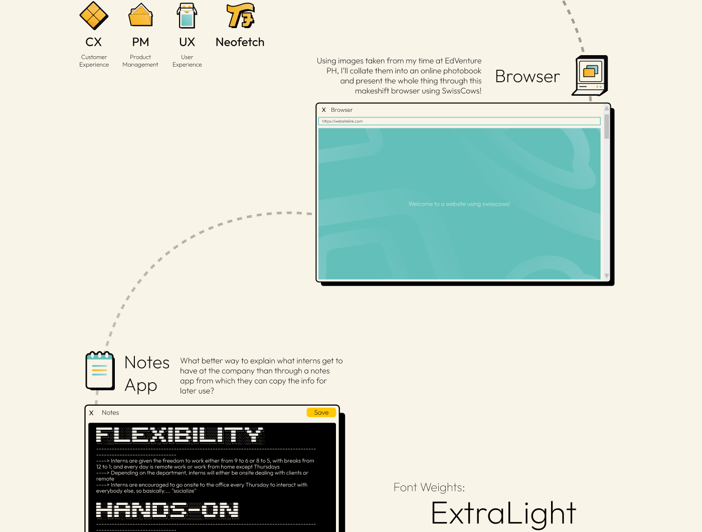 Edventure OS is a creative, OS-inspired website developed during my internship at Edventure.ph by 917Ventures. It showcases the brand identity and offers insights into my experiences and learning. The design aims to provide a user-friendly platform for parents, reflecting Edventure's mission to simplify educational support services for children.